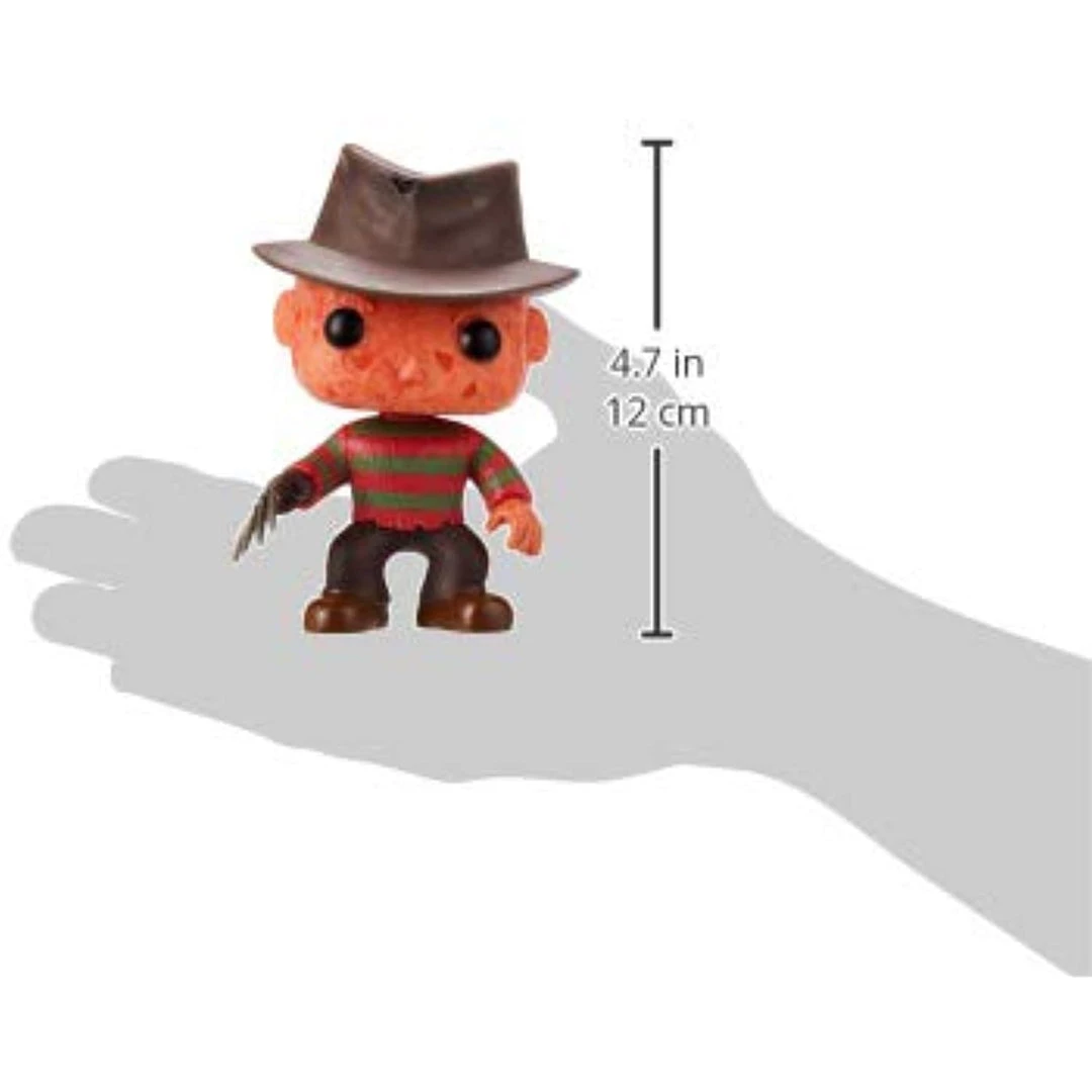 Scary looking adorable! Freddy Krueger as never seen before! Freddy Krueger in stylized urban vinyl form! This Freddy Krueger Movie Pop! Vinyl figure stands 3 3/4-inches tall. The stylized vinyl figure has a rotating head and comes in a displayable window box.