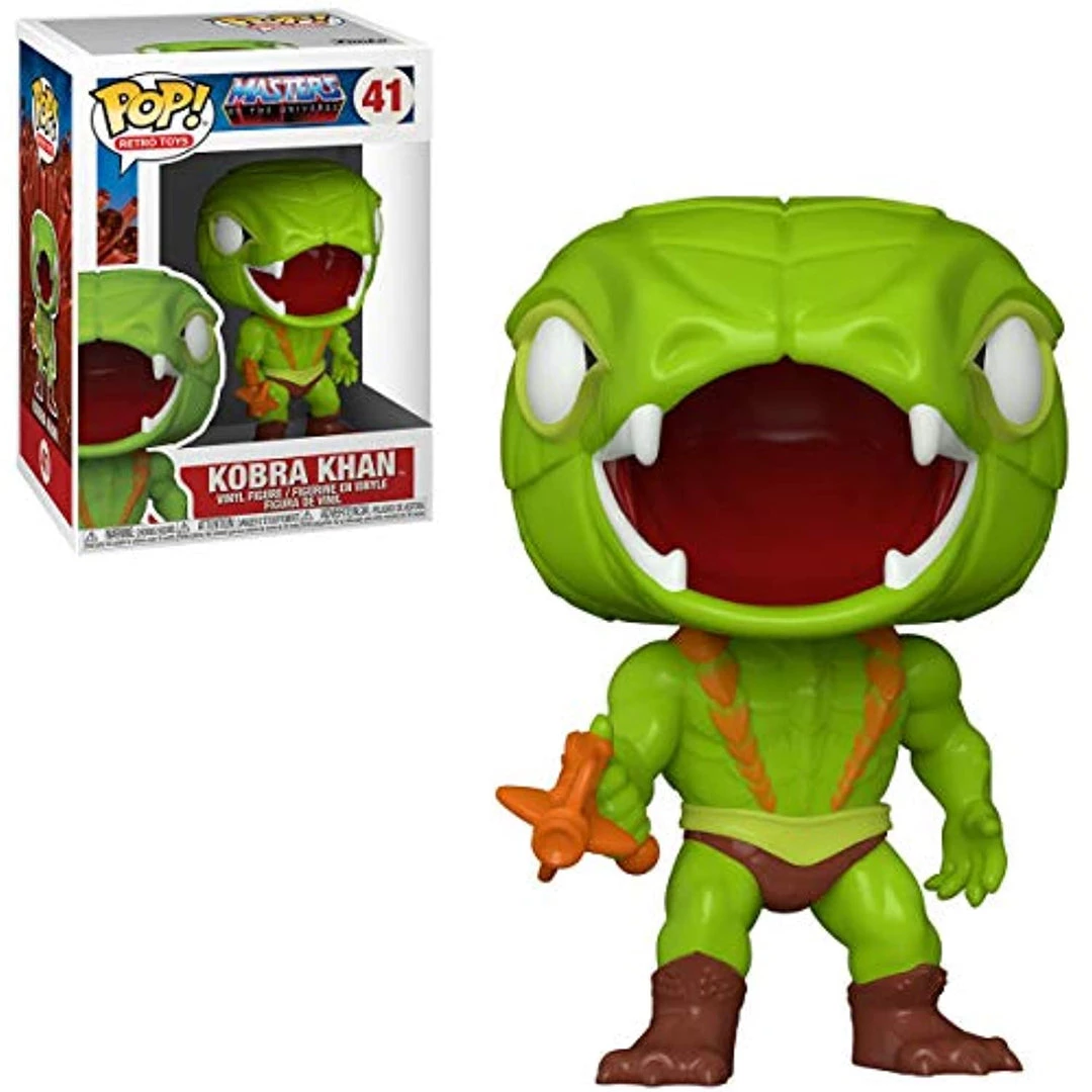 From Masters of the Universe, Kobra Khan, as a stylized Pop! vinyl from Funko! Figure stands 3 3/4 inches and comes in a window display box. Check out the other Masters of the Universe figures from Funko! Collect them all!
