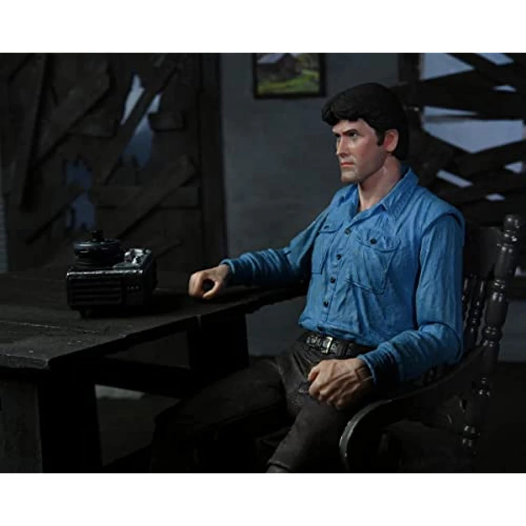 - Celebrating the 40th anniversary of the iconic cult classic movie The Evil Dead, NECA is excited to release a special Ultimate Ash 7″ scale action figure! Ash features the likeness of the one and only Bruce Campbell, and comes with three interchangeable heads, chainsaw, axe, shotgun, lantern, tape player, and more! Comes in a 40th anniversary window box with opening flap styled like the classic VHS release.