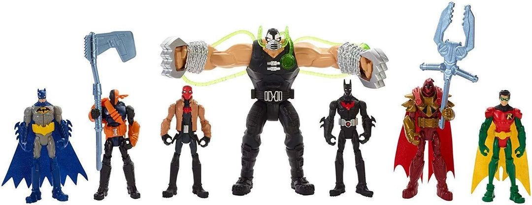 - Includes 7 Batman figures in 4-inch scale plus oversized Bane